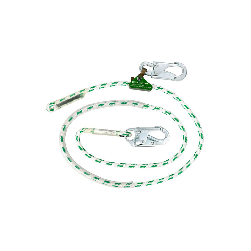 The BuckAdjuster with Linkless Snap is a fully adjustable positioning lanyard (APL) that features the patent pending BuckGrab™ and a 90 degree twist in the eye of the cam for use with a line workers body belt. The Linkless Snap feature adds to the ease of adjustment. The BuckAdjuster™ has a one of kind full red core wear indicator.