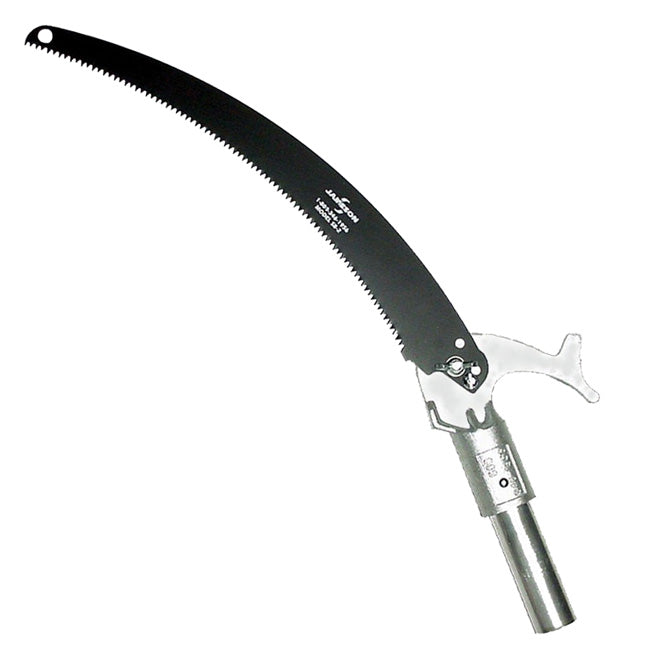 The Jameson 16 Inch Teflon Saw Pole Kit includes Pole Saw Head (PS-3) and 16 inch Teflon Coated Saw Blade (SB-2). Jameson's pole saw heads are manufactured of corrosion-resistant, lightweight aluminum. Their low profile design maneuvers easily in dense foliage; a convenient hook pulls loose limbs and branches free. Not for use on or near live wires. Not for use on or near live wires