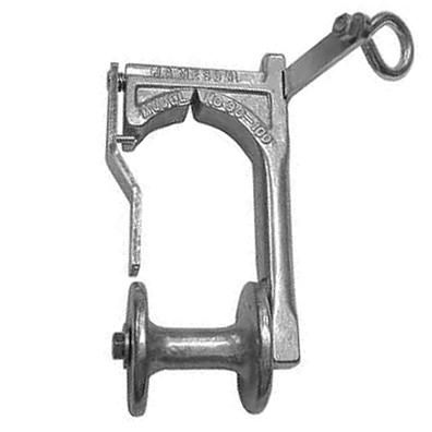 The Versa Block with Aluminum Roller is ideal for up to 2.5" diameter cable or bundles and winch lines. Versa Block with Rubber Roller is ideal for use with cable up to 1.5" in diameter. Versa Blocks offer the versatility of stringing cable at midspan on new and existing overlash construction. Provides easy cable placement from aerial buckets or the ground when used with Jameson's lay-up sticks and wire raising tool. Low-profile frame reduces cable damage as it passes through block and wide keeper arm accommodates large cable bundles when used as overlash block.