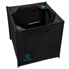 Just as effective at dispersing line during the throw as it is at receiving line being retrieved, the Notch Cube Fold & Hold Deluxe folding throwline cube can be used on the ground or in the tree with equal effectiveness. Storage features include one large exterior and two small interior pockets for holding throw weights plus an interior Velcro strap and D-ring for quick line-end recovery. The material on the bottom of the cube stretches preventing damage to the cube when packed tightly. Made with approval from Heinrich Haeussler.