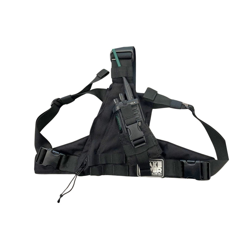 Our chest radio harness is designed to work outside of the harness. It is adjustable for different size radios. The harness features air mesh up against your body for breathability, molle for attaching knifes, carabiners, or whatever you like to fly with. The harness features a pocket for your cell phone, not pad and pin, or snacks. It features an industrial zipper for durability and ease of opening and closing. Zipper down when closed so it doesn't open up during flight...