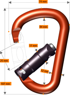 We identified several surfaces where ropes and lanyards can be held up by the edges of the gate and sleeve, which can lead to dangerous cross-loading. The auto-lock gate sleeve is designed with beveled edges to minimize this risk and provide a smoother interior for interaction with the materials connected to the carabiner.