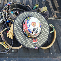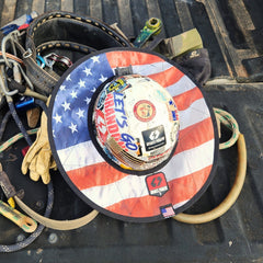 FLY SHADES DO NOT WORK WITH FULL BRIM HARD HATS. THEY ARE DESIGNED FOR PETZL, BLACK DIAMOND, ETC. STYLE HELMETS.