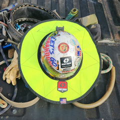 The hard hat shade comes equipped with a front pocket for the brim of your hard hat, along with 4 locations of velcro for added support..
